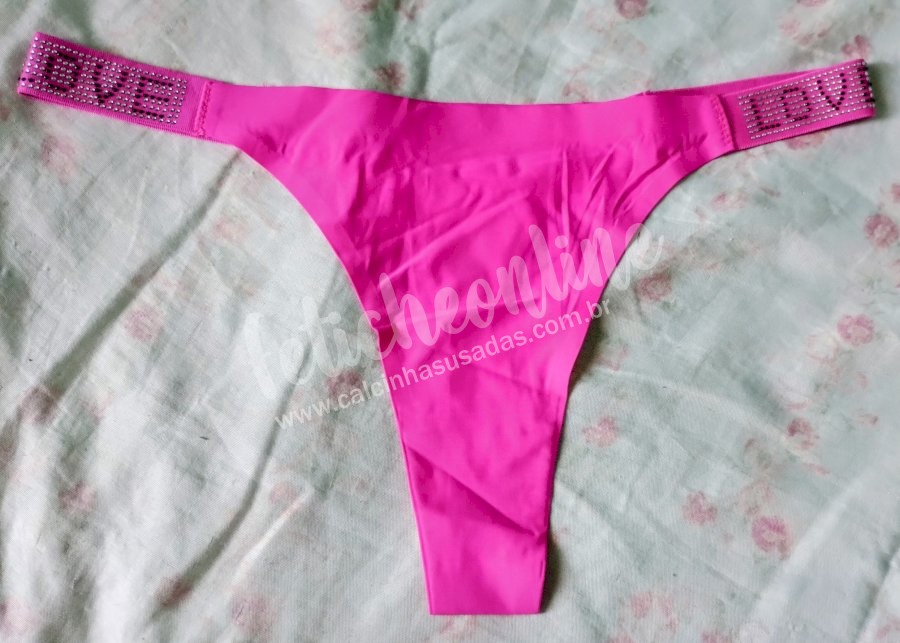 Uma calcinha linda, toda rosinha com pedras nas laterais, perfeita para eu deixar todo meu cheirinho para o comprador se delíciar!