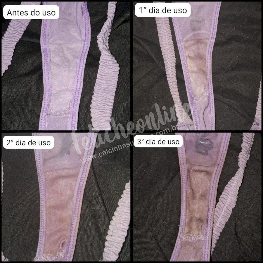 •Atenção: As calcinhas das fotos desse anúncio não estão disponíveis. São as que já foram vendidas e servem de exemplo para você ter uma noção de quanto tempo vai desejar que eu use a sua! Consulte modelos disponíveis na hora da negociação!
