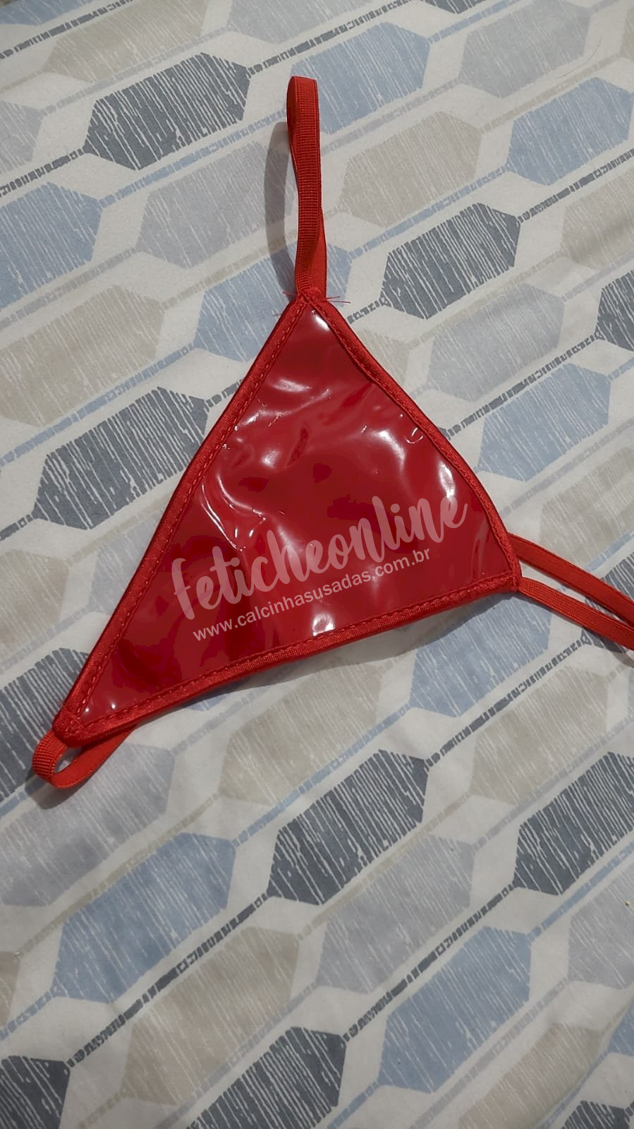Linda calcinha fio dental, com detalhe em vinil na frente.