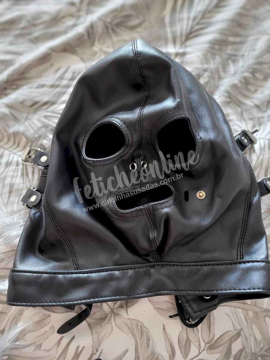 Máscara BDSM de couro ecolôgico, com mordaça respirável removível e venda removível.