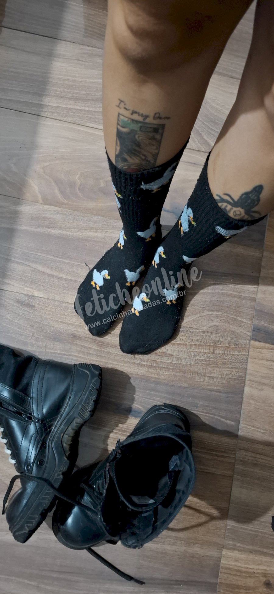 Meias usadas por vários dias, uso coturno quase diariamente, mesmo em dias quentes.